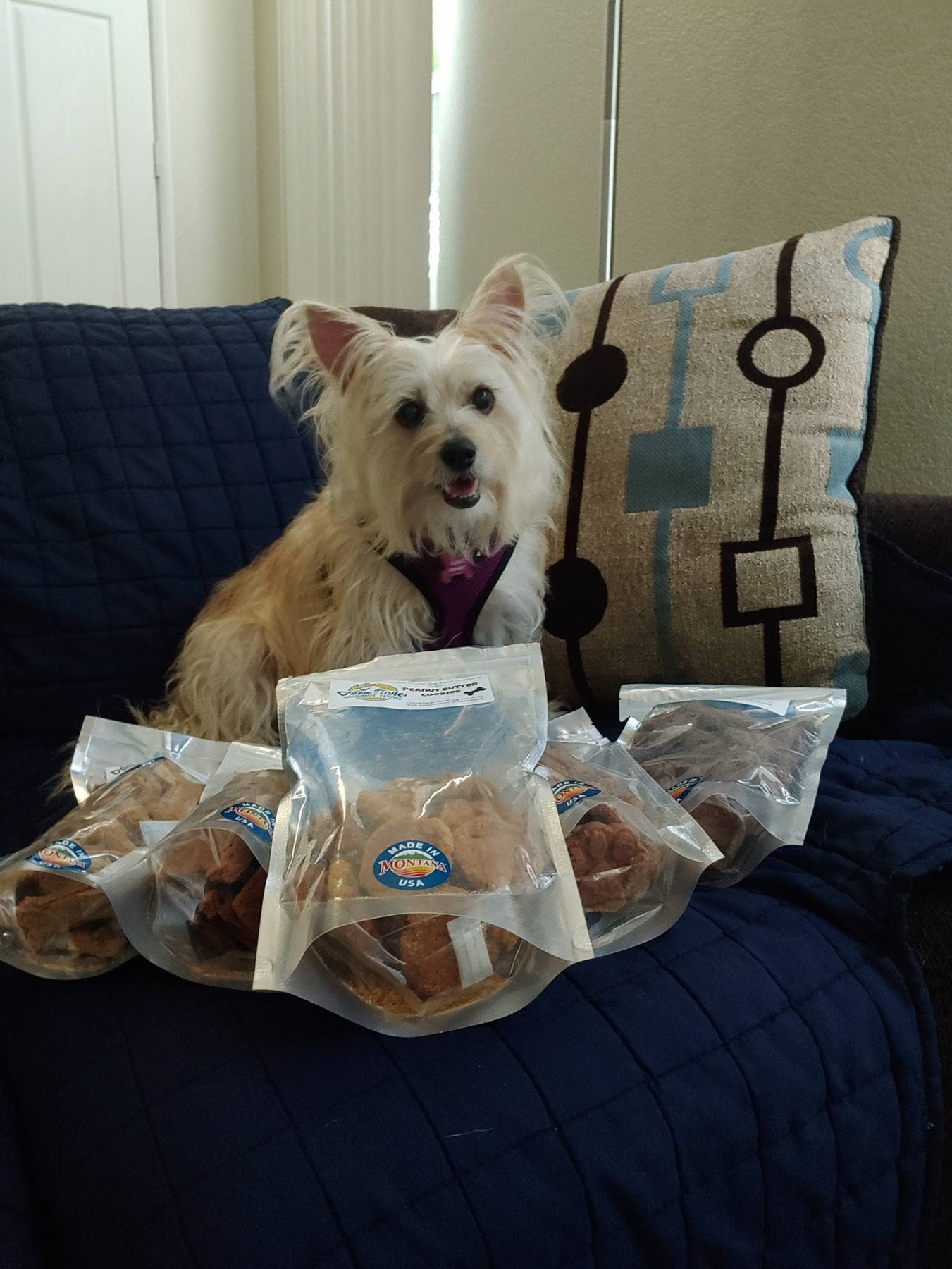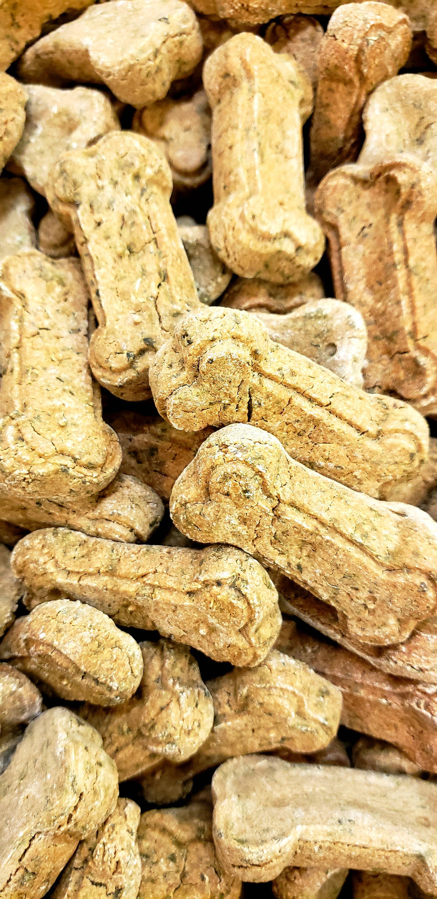 One case includes a total of (32) 6oz bags of treats. 4 - 6oz Apple & Oat Treats 4 - 6oz Bacon & Cheddar 4 - 6oz Blueberry Dirty Paws 4 - 6oz Doggie Breath Mints 4 - 6oz Fruit & Veggie Sticks 4 - 6oz Peanut Butter Cookies 4 - 6oz Pumpkin Peanut Bites 4 - 6oz Strawberry Slobber Cakes For best quality, use within 1 year of packaging date located on the back of the package. Store in a cool dry place.